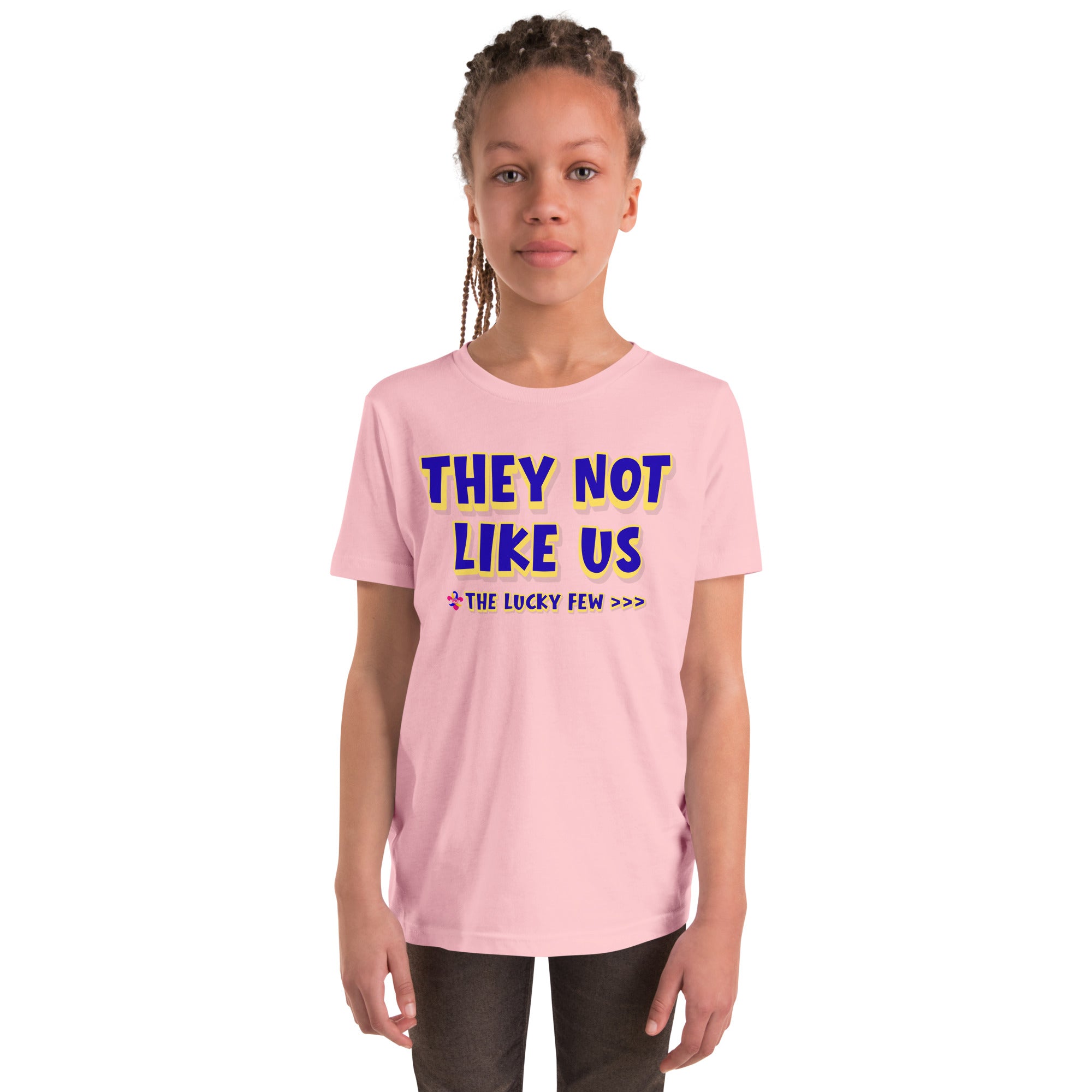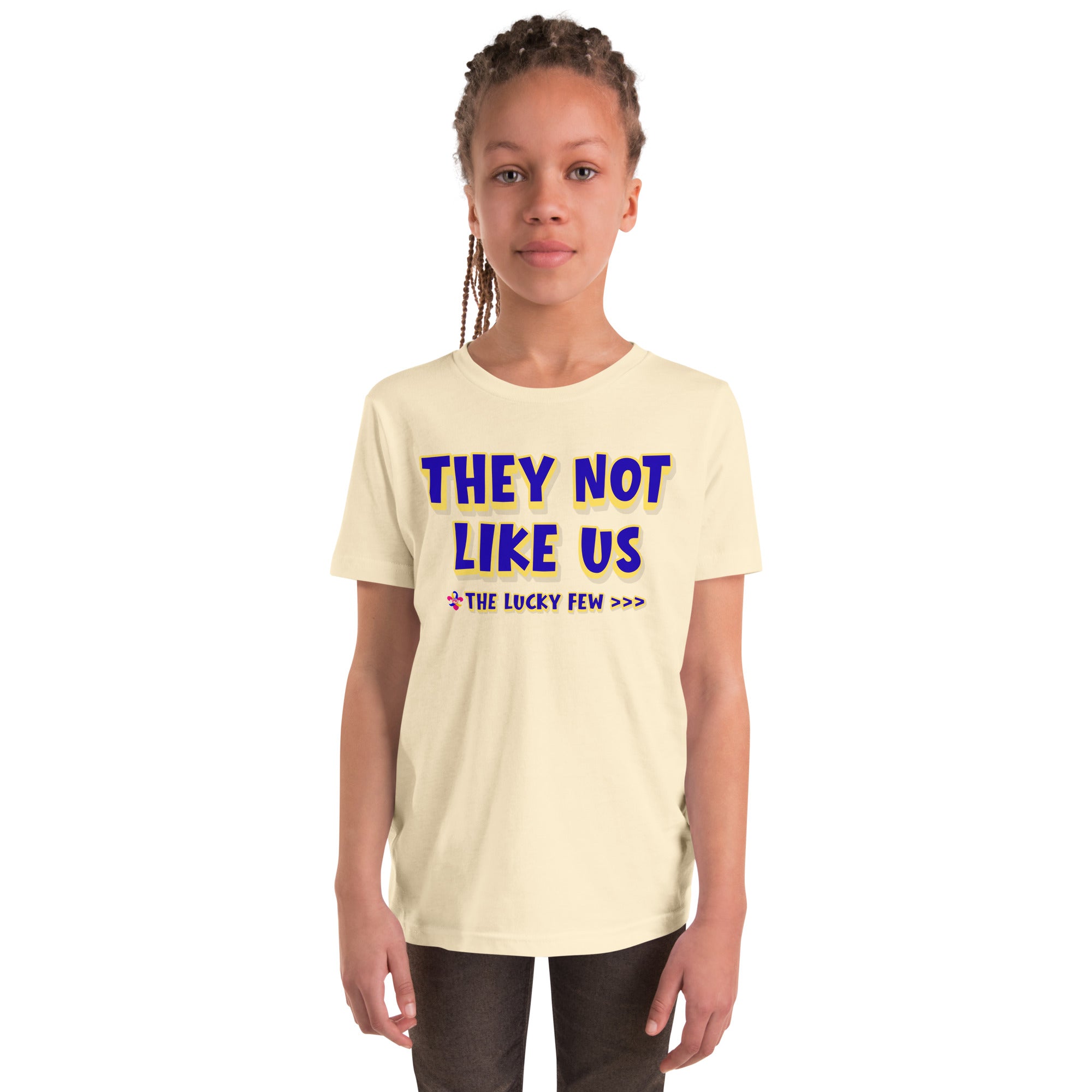 Empower the next generation and spread awareness with the "They Not Like Us" Youth Short Sleeve T-Shirt from Precious Kreations. This stylish and meaningful t-shirt features a bold, inclusive message that celebrates the uniqueness of individuals with Down Syndrome. Designed with comfort and durability in mind, this shirt is perfect for everyday wear or special awareness events.